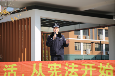 12月2日,举行了“美好生活,从宪法开始“为主题的升旗仪式,邀请法治辅导员顾警官参加并做国旗下讲话。顾警官介绍了《宪法》、《国旗法》、《国歌法》、《国徽法》的历史和精神内涵,明确奏唱国歌的场合、礼仪,以及篡改、贬损国旗、国歌将要承担的法律后果,让学生自觉纠正自己以前的一些不当做法。