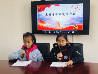 少先队利用云之声雏鹰广播向全体师生宣传宪法相关知识,学校电子屏上也滚动播放宪法宣传片,营造良好的法治氛围,教育引导家长树立“尊崇宪法、学习宪法、遵守宪法、维护宪法、运用宪法”的理念、争做学法、懂法、守法、用法的合格公民。