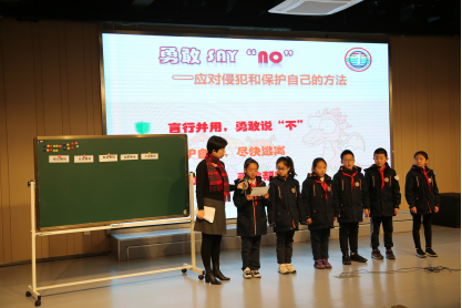 为了切实帮助少年儿童提高自我保护意识和能力,邀请了黄浦卢湾一中心小学余珏老师为四年级学生开展《“安全盾牌”我拥有,遇到侵害敢say“No”》的防性侵专题讲座。余老师从电影《素媛》讲起,让学生感受到了身边潜在的危险。接着通过观看美国防性侵教育短片,使学生知道了哪些是身体隐私部位,如何分辨和防范性侵犯行为。通过安全测试的小游戏,使学生了解了需要注意的五种警报:视觉警报、言语警报、触碰警报、独处警报、约束警报。最后教会学生遇到侵犯时应对和保护自己的方法,向侵害勇敢说“不”。